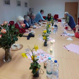 De Volkssolidaritätsgrupp Schorssow har taun Frugensdach ne lütte Fier organisiert, öber ditmal bleef Hedis Stauhl leer. Wunnerschöne Blaumgestecke un Servietten mit ein Öberraschung för jede Fru schmückten de Dische. De Bedüdung von dissen Dach wür uns ditmal up plattdütsch verklort - wunnerbor. Bäten späder künn wi uns denn ok testen, wieväl wi noch öber de Frugensbewägung wüssten.