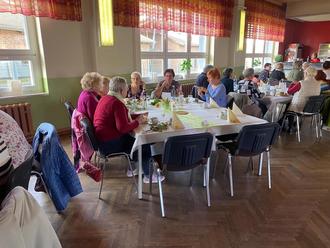Diese nahm die Ortsgruppe der Volkssolidarität zum Anlaß, die Werbetrommel zu rühren, um unseren Frauen einen gemütlichen Nachmittag zu bieten und hieran teilzunehmen. Persönliche Einladungen führten dazu, dass wir mit 17 Personen uns im Kulturhaus anmeldeten. Wir waren aber nicht nur Frauen, nein, auch drei Männer waren bei unserer Anmeldung dabei. Toll.