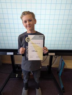 Am 28.2.26 fand im Käthe Kollwitz Gymnasium in Dierkow das große Ereignis statt. Dort belegte Niklas Overbeck aus der Klasse 4a der Johann Heinrich von Thünen Grundschule in Matgendorf den 3. Preis in der Klassenstufe 4 der Landesrunde der 65. Mathematikolympiade. Wir sind alle sehr stolz auf ihn.