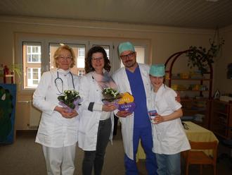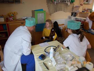 Am 22.03.2023 fand für unsere Kinder die dritte Bärchensprechstunde in der Kita statt. Hierzu brachten die Kinder ihre Kuscheltiere und Puppen mit. Ein Gruppenraum wurde als Anmeldung, Wartebereich, zu zwei Sprechzimmern und einer Apotheke umfunktioniert. Die Kuscheltiereltern dachten sich Verletzungen und Krankheiten wie gebrochene Arme- und Beine, Bauchweh oder eine Bindehautentzündung aus. Nach der Anmeldung nahmen sie im Wartebereich Platz bis sie von den Ärzten Frau Dassing und Herr Möller mit seiner Sprechstundenhilfe Gerda aufgerufen wurden. Die flauschigen Patienten und Puppen wurden vom Doktor untersucht und mit Spritzen, Pflastern und Verbänden versorgt. Nach dem Gespräch und der Behandlung erhielten sie ein Rezept für die Apotheke. Die verordneten Arzneimittel lösten sie bei der Apothekerin Frau Möller ein und die Kuscheltiere bekamen zum Beispiel Traubenzucker, Gummibärchen oder Bücher zum Vorlesen. Die Kinder und das Team der Kita „Schnatterstübchen“ bedanken sich bei den Kuscheltier- und Puppendocs für den tollen und erlebnisreichen Nachmittag.