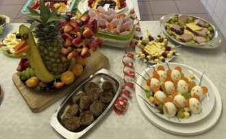 Ein besonderes Highlight war das liebevoll vorbereitete Büfett, das von den Eltern organisiert wurde. Auf den Tischen standen viele leckere Snacks, Obstspieße, Stüllchen und andere kleine Köstlichkeiten, die bei den Kindern großen Anklang fanden. Das gemeinsame Essen sorgte für eine gemütliche und fröhliche Atmosphäre.