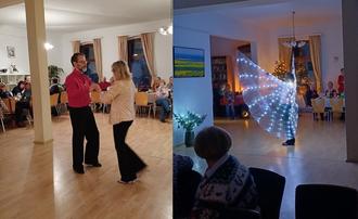Am 11.12. wurde Weihnachten im ausgebuchten Gemeindehaus Trollenhagen gefeiert. Die Kinder der Trollenhagener Kita „Kinnerstuw“ traten mit einem schönen Programm auf. Die Kleinen hatten sichtlich Spaß beim Hüpfen, Singen und Gedichtvortragen. Anschließend konnten sie Geschenke von der Gemeinde Trollenhagen im Empfang nehmen. Am Kuchenbuffet gab es eine große Auswahl an selbst gebackenen Kuchen, den man sich zum Kaffee schmecken lassen konnte. Das Tanzpaar Veronika & Andreas präsentierte mehrere Standardtänze und animierte beim Line Dance auch einige Mitstreiterinnen zum Mitmachen. Mit einem Engeltanz wurden die Gäste zum Abschluss verzaubert. Zum Gitarrenspiel sang Regina Thauer Weihnachtslieder, in welche die Gäste im Gemeindehaus einstimmten.