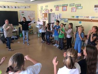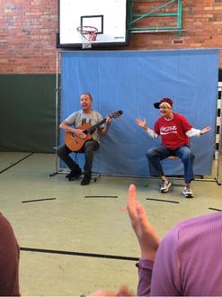 Neben einer lebhaften Unterhaltung in kindgerechter Sprache mit den Schauspielern sangen die Schüler in jeder Lektion den Körpersong. Dieser sorgte bei allen Beteiligten für gute Laune.