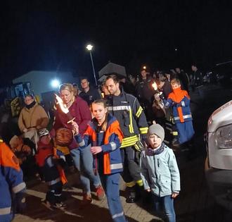 Die Veranstaltung begann mit dem Entzünden der Fackeln und der Lampions, die die Kinder stolz durch die Straßen trugen. Die bunten Lichter der Lampions erhellten die Nacht und zauberten ein Lächeln auf die Gesichter der Teilnehmer. Die Kameraden der Freiwilligen Feuerwehr sicherten den Umzug ab.