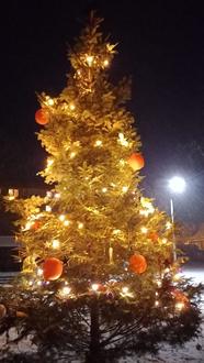 Erst am Abend entfaltet der Weihnachtsbaum seine ganze Schönheit und er wird die gesamte Adventszeit leuchten!