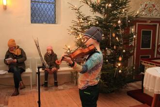 Rudi Bräsel begleitete mit der Bratsche den Gesang von „Kling Glöckchen“.