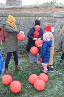 Weil die roten Ballons sich im letzten Jahr als besondere Blickpunkte bewährt hatten, bereitete Swantje Sy (1.v.l.) sie auch für den diesjährigen Baum vor.
