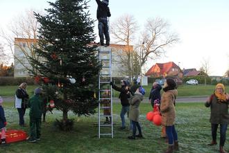 Wie schon die Jahre zuvor trafen sich am 1. Advent Zirzower Kinder mit ihren Eltern zwischen Spielplatz und Kirche, um den diesjährigen Weihnachtsbaum zu schmücken. Dabei suchten die Kinder Platz für ihre selbst bemalten und gestalteten Anhänger, die neben dem handelsüblichen Baumschmuck der Clou sind und den Weihnachtsbaum zu etwas Besonderen machen!