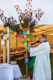Zu Beginn des Festes fand ein Gottesdienst mit Pastor Martin Doß statt. Anlässlich des Jubiläums schenkte er dem Dorf Roggenhagen einen "Wünschebaum". Daran konnten Zettel angebracht werden.