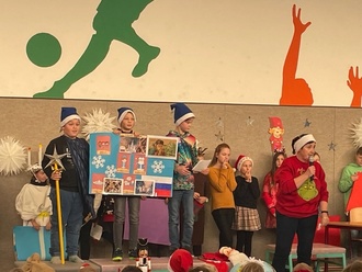 Schon zur Tradition geworden, fand zum Jahresabschluss das bunte Weihnachtsprogramm statt. Nach der dritten Schulstunde versammelten sich alle Schüler, Lehrer, Hortmitarbeiter und Helfer in der festlich geschmückten Turnhalle. Die Aufführung begann mit der Auszeichnung der besten Schüler. Jede Klasse präsentierte eine eigene Darbietung, die von Instrumentalstücken bis zu Gedichtvorträgen reichte. Es wurde ein Märchen aufgeführt und eine knifflige Rechenaufgabe gestellt. Zum Abschluss erfuhren alle, wie das Weihnachtsfest in anderen Ländern gefeiert wird. Gut gelaunt verabschiedeten sich alle in die wohlverdienten Ferien.