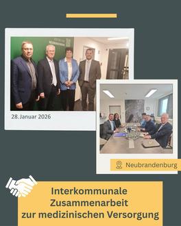 Das Amt Neverin hat gemeinsam mit der Vier-Tore-Stadt Neubrandenburg sowie den Städten Altentreptow, Burg Stargard und Penzlin einen Letter of Intent (LOI) zur interkommunalen Zusammenarbeit unterzeichnet. Ziel der Vereinbarung ist es, die ambulante medizinische Versorgung in der Region langfristig zu sichern und gemeinsam weiterzuentwickeln.