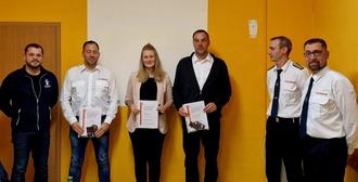 Es folgten die Beförderungen der Kameradin Mareike Ott und der Kameraden Jan Jungmann und Michael Cyttrich zur Feuerwehrfrau bzw. zum Feuerwehrmann.