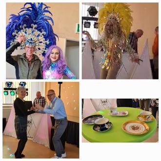 Nachdem ausgiebig Kaffee und Kuchen vertilgt wurden, gab es eine echte Überraschung, eine Travestietänzerin trat auf und unterhielt uns alle sehr gut. Für seine sehenswerten Kostüme und die gekonnte Performance erhielt der Künstler „Bond“ viel Applaus.