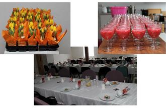 Es ist alles vorbereitet, Blumen und Bowle stehen zur Begrüßung bereit.