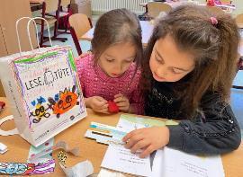 Für die Erstklässler gab es am Zeugnistag eine ganz besondere Überraschung. Die Klassen 2a und 2b übergaben selbstbemalte und befüllte Lesetüten an unsere Schulanfänger. Gemeinsam wurde sich angeschaut, welche kleinen Geschenke sich darin versteckt hielten.