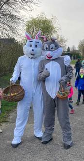 Die Stimmung war ausgelassen, als plötzlich zwei flinke Osterhasen auf einem Moped auftauchten. Mit einem breiten Lächeln verteilten sie bunte Süßigkeiten an die Kinder, die vor Freude strahlten. Die Osterhasen hatten ihre Mission: Ostereier für alle!