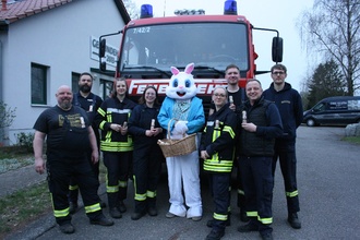 Zur großen Überraschung der kleinen und großen Gäste gab es Besuch vom Osterhasen. Er hatte in seinem Korb insbesondere zur Freude für die Jüngsten noch etwas zu Naschen dabei.
