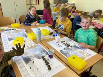 Constantin: „Mir hat der Projekttag gefallen. Wir haben aus dem kleinen Teich neben unserem Klassenraum die ganzen Blätter rausgeholt. Wir haben sogar einen Molch gefangen, den haben wir aber wieder reingesetzt.“