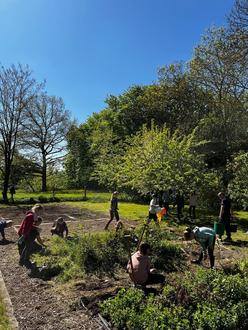 Für die vierten Klassen boten der Schulgarten und der Sportplatz ein ideales Betätigungsfeld. Hier erhielten die Schüler kräftige Unterstützung von Eltern, Omas und Opas.