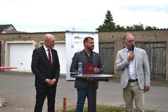 Landrat Heiko Kärger und Innenminister Christian Pegel übergaben am 27. Mai symbolisch die Fördermittelbescheide und besiegelten somit den offiziellen Startschuss für den Neubau, für den sogar die Baugenehmigung schon vorliegt.