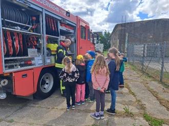 Zuerst besuchte die Klasse 2b zusammen mit ihrer Klassenlehrerin Frau Krüger die Feuerwehr.