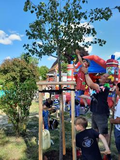 An diesem Nachmittag durften die Kinder ebenfalls, zusammen mit unserem Bürgermeister Herrn Schenk, einen Baum einpflanzen. Tatkräftig packten die Kinder an, um den Baum mit Erde zu bedecken und zu gießen, anschließend wurde der Baum noch ein wenig geschmückt.