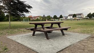 Auf dem Sportplatz am KTO, zwischen den Patenbäumen gelegen, findet sich ab sofort eine Sitzgruppe, die zum Verweilen einladen soll. In den kommenden Wochen werden außerdem Metallbügel installiert, die das Abstellen von Fahrrädern ermöglichen bzw. als weitere Sitzmöglichkeit genutzt werden können.