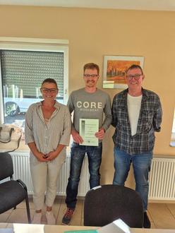 Gemeinde Beseritz, 22.07.2024: Ernennung des neu gewählten Bürgermeisters Jan Riedel (Mitte) durch die Amtsvorgängerin, Mandy Becker und den ehem. 1. Stellvertreter, Uwe Zehnter