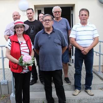 Unsere Gemeindevertreter: vorn die scheidende Bürgermeisterin Waltraut Nath und Rüdiger Gerwien als neuer Bürgermeister. Dahinter v.l.n.r. Hartmut Schulz, Matthias Hoffschildt, Katrin Gerwien, Peter Streuling und Joachim Ader.