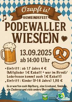 Am 13.09.2025 findet unser diesjähriges Gemeindefest unter dem Motto „Podewaller Wies(e)n“ in Podewall statt.
