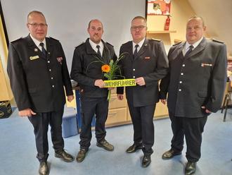 von links: Kreiswehrführer Stephan Drews, der "Neue" Dominik Tramp, der "Alte" Marcel Thiele und der stv. Kreiswehrführer Jörg Schmidtke