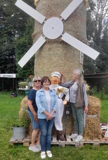 V.l.n.r. Silvia, Sabine und Thea sind froh, es dank vieler Helfer wieder einmal geschafft zu haben. Die „Mühle“ mit vielen Details steht - vor allem zur Freude der Kinder. Neu sind auch die Schilder, ein Teil ist links im Bild zu sehen, die das 795. Jahr und das Datum des Dorffestes verkünden. Hier geht das Dankeschön an Marco Pietsch!