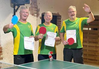 Das Sommerfest unseres Vereins musste leider abgesagt werden. Das traditionelle Tischtennisturnier jedoch, sozusagen unser jährliches Highlight, fand unter reger Beteiligung wiederum statt. Neun Sportfeund/innen wetteiferten um den Dorfmeisterpokal. Im Einzel sicherte sich Karl Ehricke den Titel (Bildmitte) gefolgt von Rüdiger Ferdyn (Foto links) und André Zabel (Foto rechts). Im Mannschafts-Doppel gewann das Duo Mattias Kleiber/Lothar Prehn. Dieses Turnier hat allen Beteiligten mal wieder richtig Spaß gemacht. Ein weiterer Höhepunkt wird nunmehr das dritte Mannschaftsturnier mit den Ihlenfelder Sportfreunden am 23.Oktober hier im Woggersiner Speicher sein. Bis dahin motivieren wir uns weiterhin im wöchentlichen Training und bleiben sportlich aktiv.