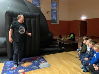 Das mobile Planetarium kam zu uns und machte Station in der Turnhalle. Dr. Michael A. Danielides brachte in seinen interessanten Vorstellungen den neugierigen Kindern die Sterne zum Greifen nah.