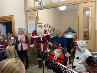 Zu handgemachter Livemusik sangen alle den letzten Schultag vor den Weihnachtsferien ein. Da kam so richtig Weihnachtsstimmung auf bevor sich die Klassen in ihre Weihnachtsprojekte stützten um diesen besonderen Schultag so richtig weihnachtlich zu verbringen. Eltern und andere morgendliche Besucher wurden von den schönen Weihnachtsliedern in Adventsstimmung versetzt und verließen lächelnd unsere Schule.