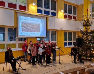 Ein weihnachtliches Programm, vorgetragen von Schülerinnen und Schülern der 5., 6. und 10. Klassen eröffnete den Tag. In Vorfreude auf das Weihnachtsfest ließ es die Herzen aller Gäste höher schlagen.