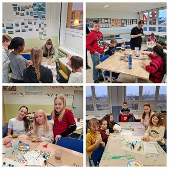 Und auch das Basteln kam passend zur Weihnachtszeit nicht zu kurz. Im Fachbereich Geografie und Sozialkunde konnte das eigene Wissen am Smartboard getestet werden.