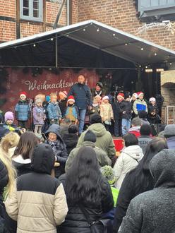 Eröffnung des Weihnachtsmarktes durch den Bürgermeister, begleitet durch die Kita Kinderland