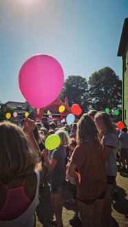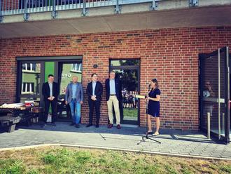 Im Mittelpunkt der Eröffnungsfeier standen aber selbstverständlich die Kinder. Neben einer Hüpfburg und Kinderschminken erhielten die Hortkinder Mieke, Hanna, Mara, Alma, Romy und Helena die ehrenvolle Aufgabe, das symbolische Band zum Start der Eröffnung durchzuschneiden. Als weiteres Highlight flogen farbenfrohe Luftballons mit Wünschen der Kinder und Konfettikanonen in die Luft.