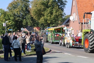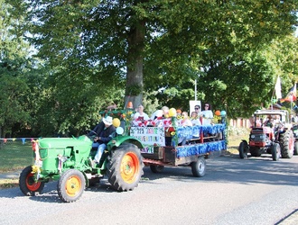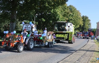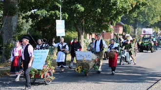 Vielfältige Bilder in historischen Kostümen und Fahrzeugen, dirigiert von Rolf Grüschow, präsentiert durch Familien, Freunde, Gäste, Sportgruppen und Firmen zogen im Festumzug durch unsere Gemeinde. Unsere Jüngsten mit der Tagesmutti-Gruppe und der Jugendgruppe der FFW Blievenstorf zogen voran. Eingerahmt wurde der Umzug durch moderne Technik von Feuerwehr und Landwirtschaft.
