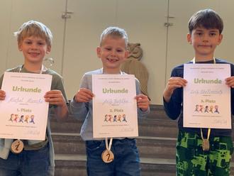 Stolz nahmen die drei ersten Jungen und Mädchen ihre Sieger Urkunden und Waldmedaillen in Empfang.