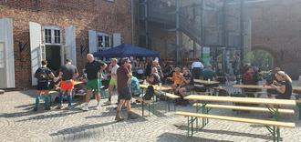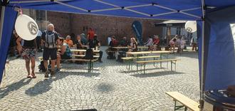 Bilder vom Verpflegungspunkt im Innenhof unserer Burganlage, betreut durch Mitglieder der Volkssolidarität.