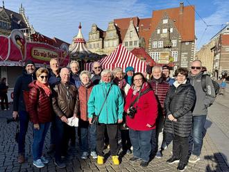 Der Auftakt des Treffens begann am Freitagnachmittag im Café Classico, wo bei Kaffee und Kuchen sofort gute Stimmung herrschte. Anschließend spazierte die Gruppe über den Bremer Marktplatz, machte Erinnerungsfotos und genoss das historische Flair rund um das Rathaus und die berühmten Stadtmusikanten.