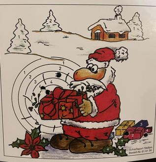 Am 9. November hieß es Weihnachtsbratenschießen. Nein, wir gehen nicht in den Wald, um uns einen Braten zu schießen. Von dem Startgeld jedes Schützen werden Fleisch- und Wurstpakete, dieses Jahr von unserer Fleischerei Wacker gepackt. Der Erstplatzierte sichert sich den größten Braten, der Zweitplatzierte das nächstgrößte Paket usw. Der Spaß steht im Vordergrund, so dass auch der letzte Platz sich über die Bockwürste freut. Zudem auch das Glück eine große Rolle spielt. Mit der Glückskarte haben selbst die besten Schützen so ihr Problem. Bloß nicht den Weihnachtsmann treffen, war die Devise. Dann fällt Weihnachten aus.