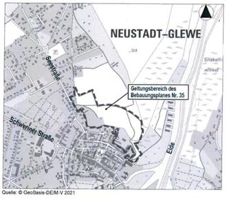 Der räumliche Geltungsbereich für den Bebauungsplan Nr. 35 der Stadt Neustadt-Glewe ist dem nachfolgenden Übersichtsplan zu entnehmen.