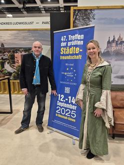 Unser Landkreis Ludwigslust-Parchim war, wie schon in den Vorjahren, ebenfalls vor Ort vertreten. Als Stadt Neustadt-Glewe nutzten wir den Gemeinschaftsstand des Landkreises, um auch unsere touristischen und kulturellen Highlights wie das vom 30. Mai - 1. Juni 2025 stattfindende Burgfest zu bewerben.