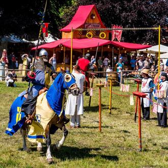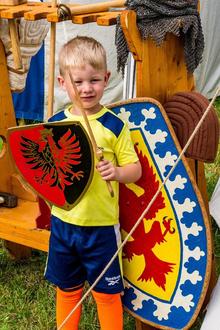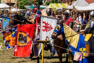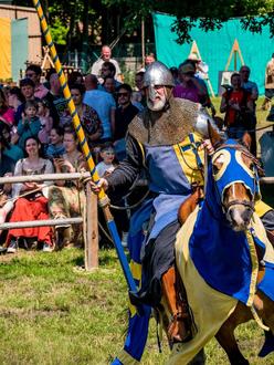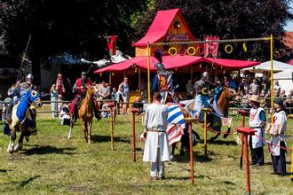 Doch nicht nur auf dem Turnierplatz hatten die Besucher viel zu sehen. Rund um die Burg sowie im Burghof präsentierten Händler Keramik, Schmuck, Kleidung, Leder, Holzschwerte für Kinder und viele weitere Waren. Musiker und Puppenspieler sorgten für die richtige Stimmung und viele Angebote luden zum Mitmachen ein.