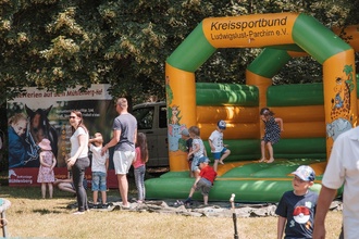 …während sich die Kinder ihre Zeit auf der Hüpfburg, beim BungeeRun oder Ponyreiten vertrieben.