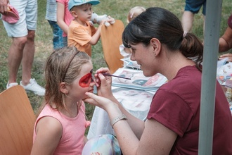 Das Bungee Trampolin kam nicht nur bei den Kindern, sondern auch bei den Erwachsenen gut an. Brauchte man etwas Ruhe, so konnte man in der Mal- und Bastelstraße einen Baumwollbeutel bedrucken, Gipsfiguren anmalen, Tiermasken basteln oder sich schminken lassen.