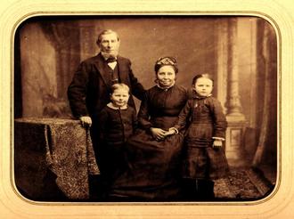 Das Familienfoto aus dem Spätsommer 1886 zeigt die 5-jährige Anna Laß mit ihren Eltern Wilhelm Johann Laß und Dorothea Sophie Laß geb. Rieland und ihrem kleineren Bruder Wilhelm Laß. Diese Aufnahme ist mit eins der ersten Bilder, das im Fotografenatelier A. Burow in Neustadt i.M. in der Ludwigsluster Str. 328 (5) angefertigt wurde. (Der Hintergrund mit den Säulen war bis in die 1950er Jahre dort im Laden vorhanden.)
